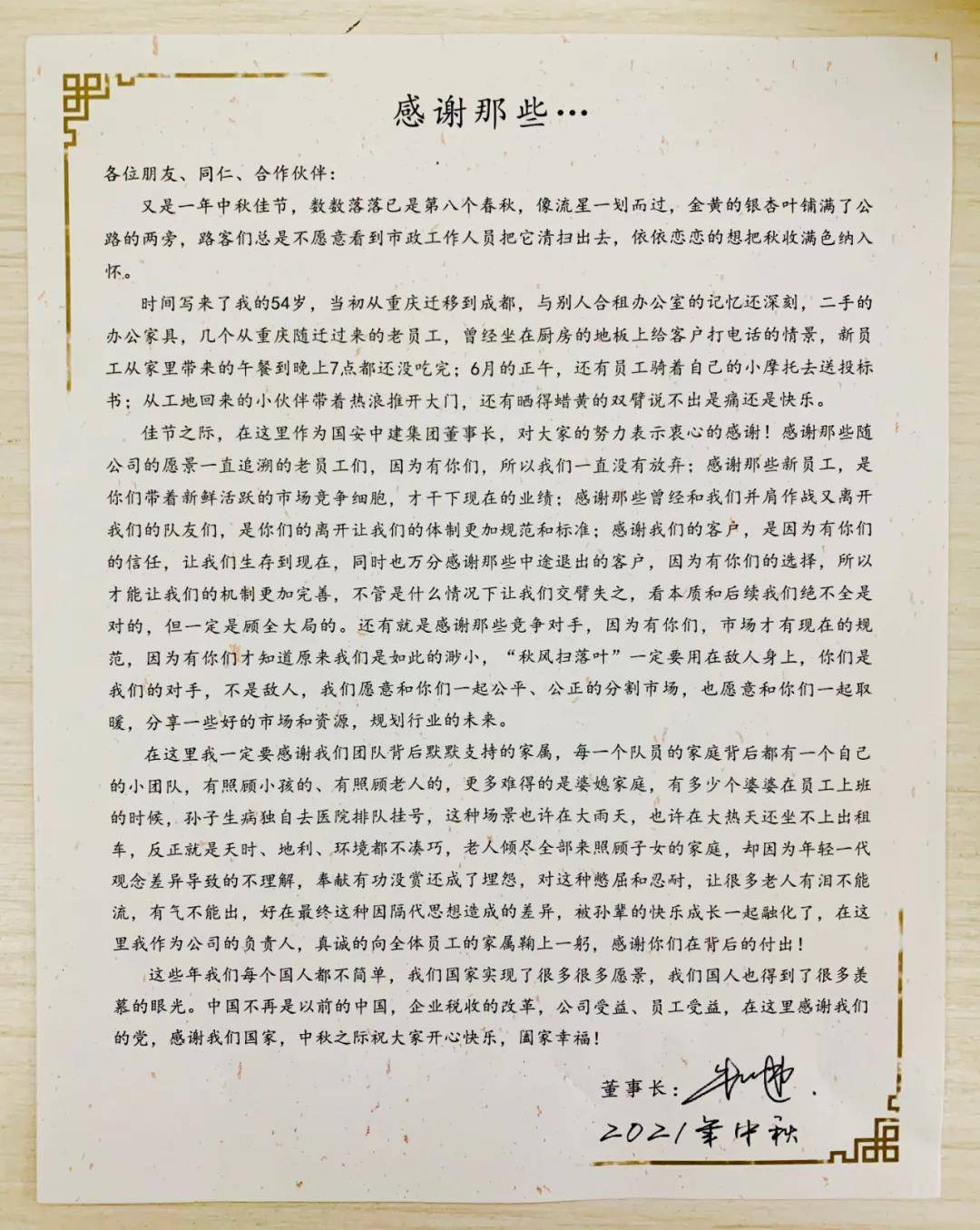 喜迎中秋,集团董事长节日寄语